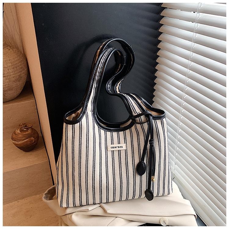 2025 новая нишевая сумка на плечо в полоску простая сумка-тоут простая универсальная портативная с цветовой блокировкой сумка-подмышка чёрный