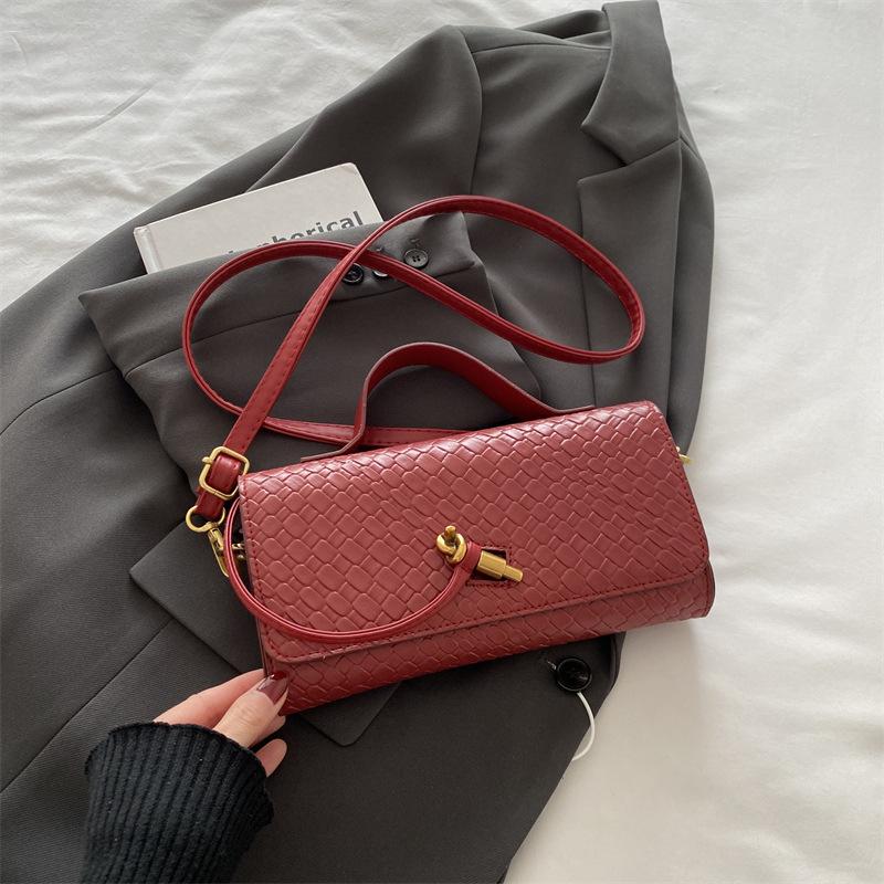2025 новая плетеная сумка, сумка-багет на одно плечо, нишевая, высококлассная, горизонтальная, ручная, вечерняя сумка, кроссбоди, универсальная сумка красный