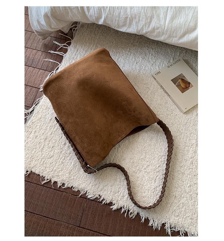 2025 новая ретро замшевая модная сумка-ведро повседневная сумка-тоут для поездок на работу сумка для мамы большая вместимость на плечо сумка-мессенджер коричневый
