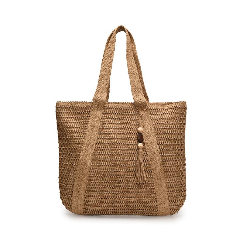2025 новая соломенная плетеная пляжная плетеная сумка женская с кисточками ажурная большая сумка-тоут отпускная сумка хаки