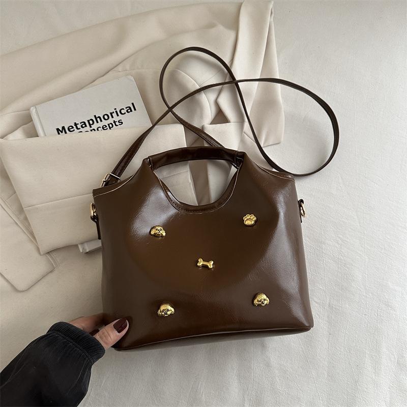 2025 новая сумка женская премиум-класса с заклепками, сумка-тоут с щенком, на плечо, сумка-мессенджер, универсальная, в стиле ретро для поездок на работу