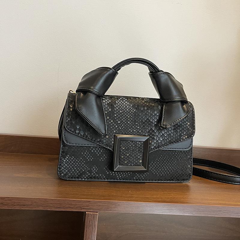 2025 новая сумка с узором змеиной кожи, премиальный вид, ретро, женская, универсальная, модная, портативная, на плечо, через плечо, маленькая квадратная сумка чёрный