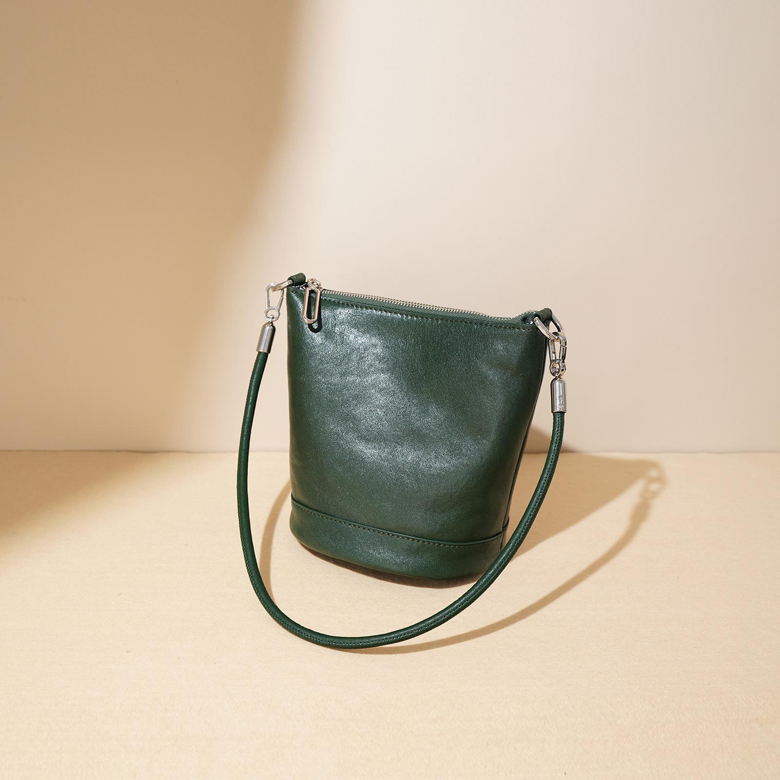 2025 новая универсальная ретро двухслойная женская сумка-ведро из коровьей кожи премиум простая на молнии на плечо/кроссбоди