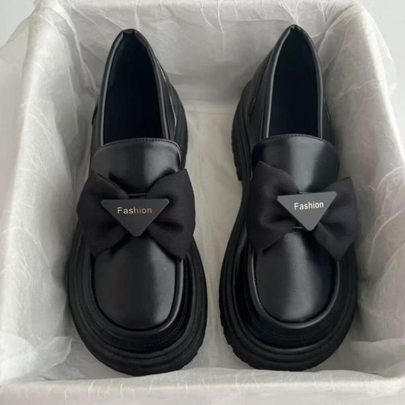 2025 новые весенние ретро-туфли из кожи, туфли на платформе, женские туфли в британском стиле на толстом каблуке, мягкая подошва, женские туфли большого размера 35 чёрный