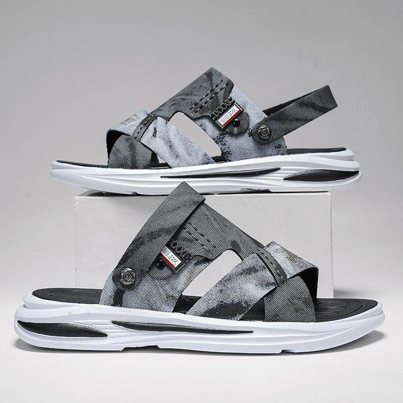2025 новые летние мужские крутые шлепанцы два способа носки дышащие трендовые модные универсальные мягкая подошва повседневные полые пляжные туфли 44 серый