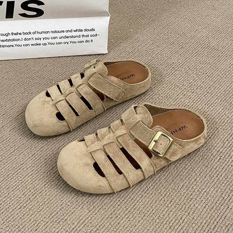 2025 новые летние римские сандалии ретро полые мягкая подошва сумка голова полушлепанцы на одном педале ленивые биркенштоки повседневные 40