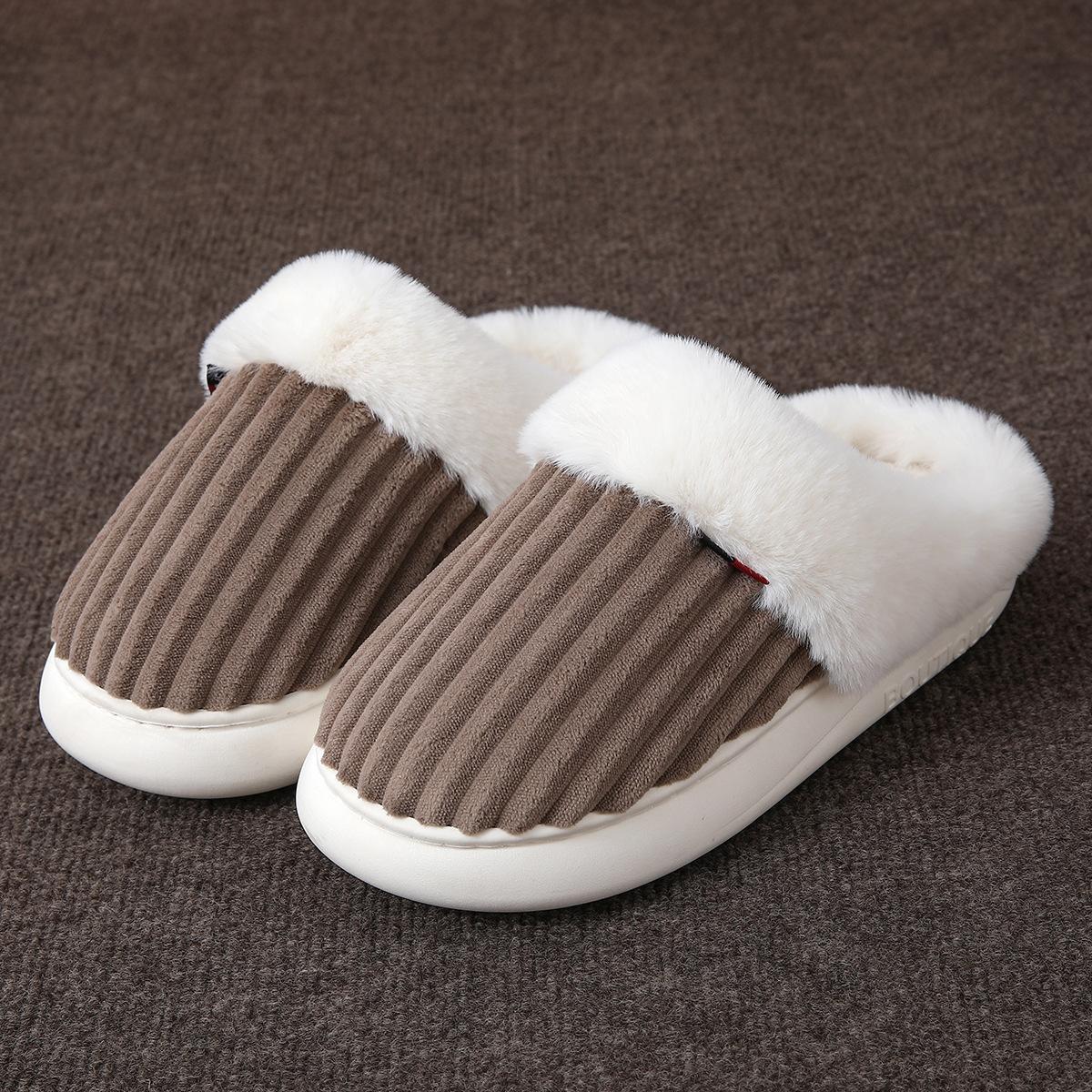 2025 новые плюшевые тапочки зимние утолщенные из кораллового флиса с большим волосатым ртом хлопковые тапочки теплые парные домашние комнатные хлопковые туфли 46-47 кофейный
