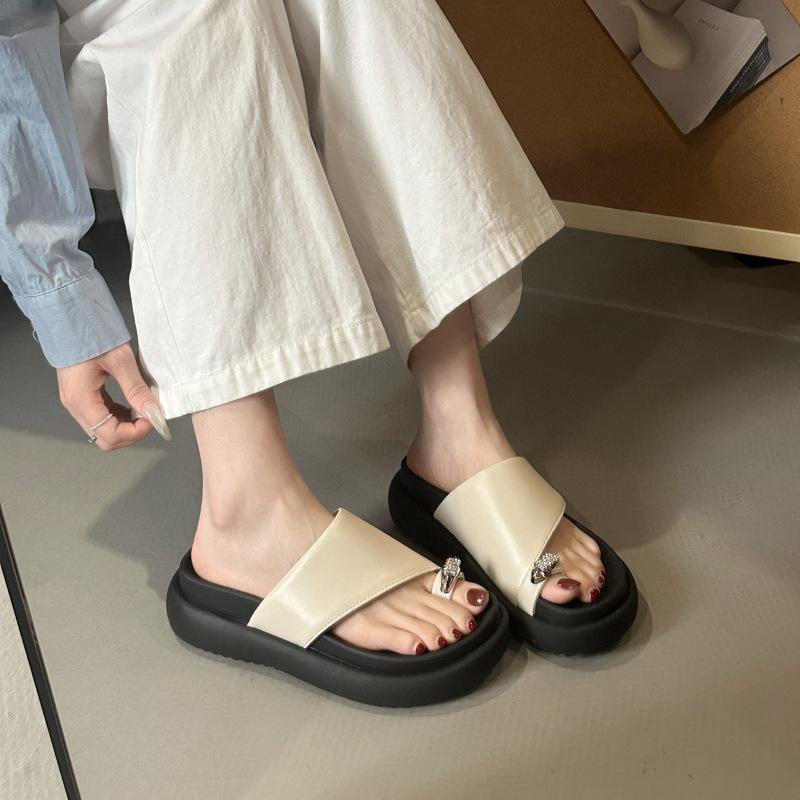 2025 новые пляжные кожаные шлепанцы на толстой подошве для женщин, корейская версия летней новой обуви с закрытым носком, на маффиновой подошве, крутые шлепанцы 35