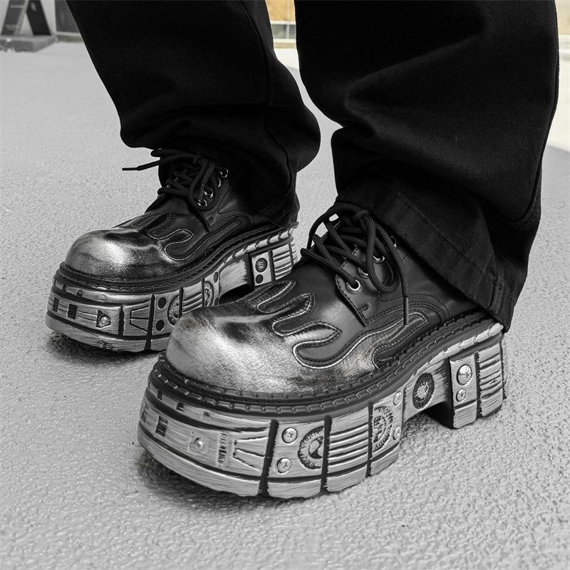 2025 новые ретро кожаные туфли на платформе с глубоким вырезом в стиле тяжелой промышленности, универсальные туфли с большой головой, модные туфли, повседневная обувь 561206-J 38 серебряный