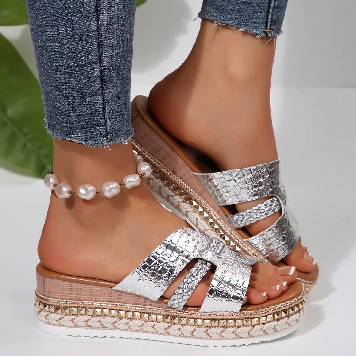 2025 новые сандалии обувь на платформе новые женские летние уличные плетеные из соломы с надписью крутое слово женская обувь шлепанцы 36 серебряный