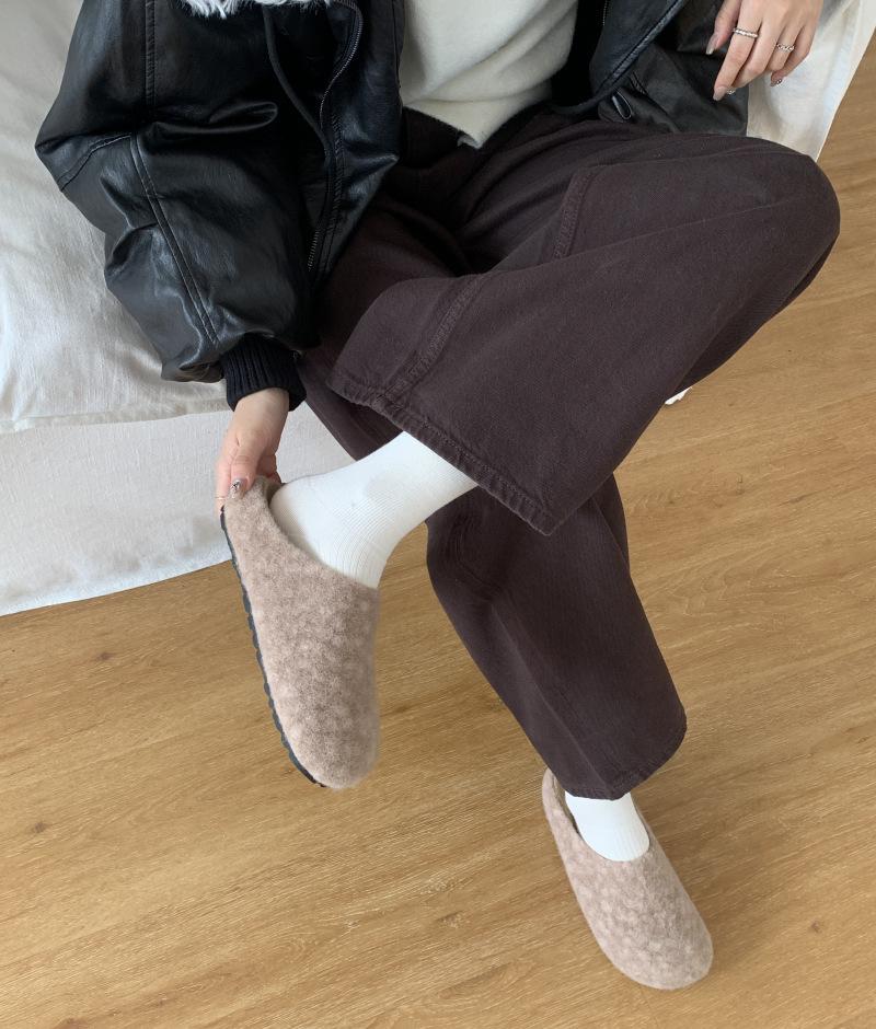 2025 новые тапочки Мао Мао женские осенне-зимние плюшевые с закрытым носком полутапочки на плоской подошве хлопковые шлепанцы модные туфли Мао Мао 39 абрикосовый