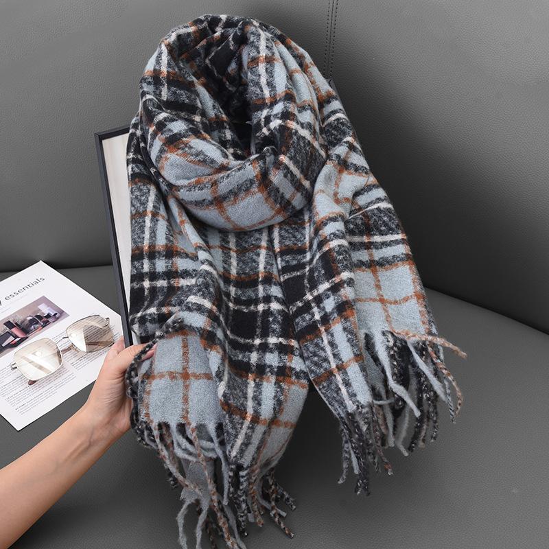 2025 новый клетчатый шарф имитация кашемира бахрома шаль осень и зима атмосфера пары теплый и утолщенный шарф 65-180CM
