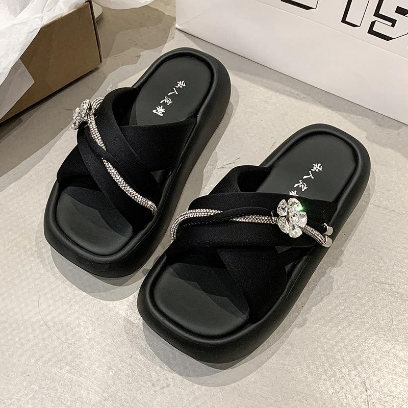 2025 новый летний супер огонь национальный стиль красивые крутые тапочки женская обувь модные с высоким чувством толстая подошва универсальные с юбкой 40 чёрный