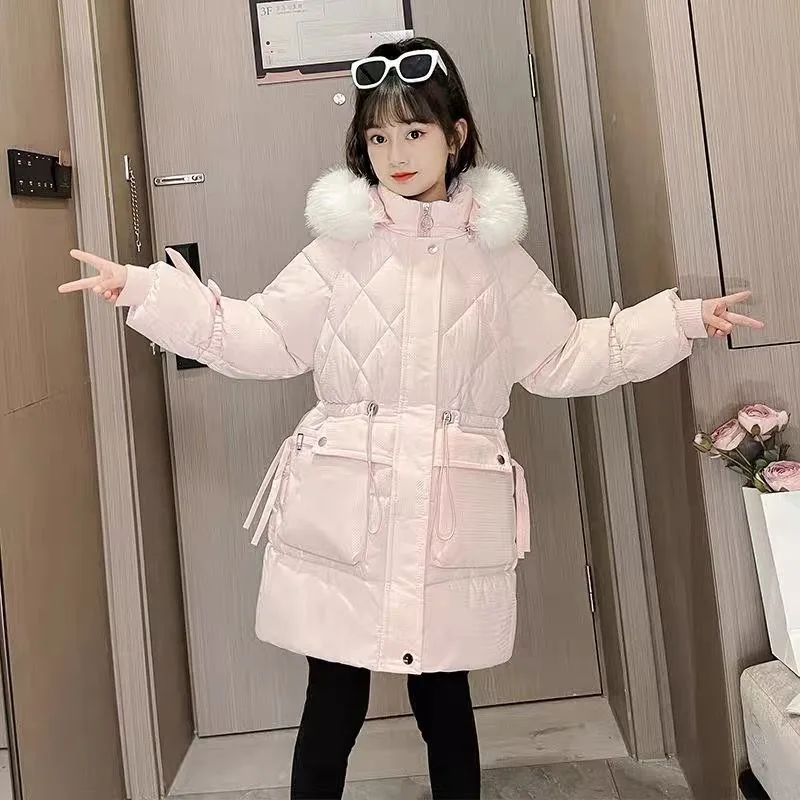 2025 новый стиль, зимнее пуховое утепленное хлопковое пальто на флисовой подкладке для девочек, теплая стильная уличная повседневная одежда для малышей и девочек