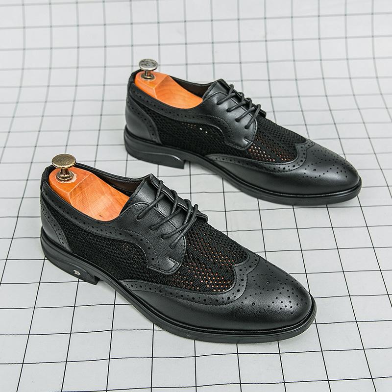 2025 обувь большого размера 2025 лето новая полая Брок бизнес дышащая мужская кожаная обувь сандалии прилив 38