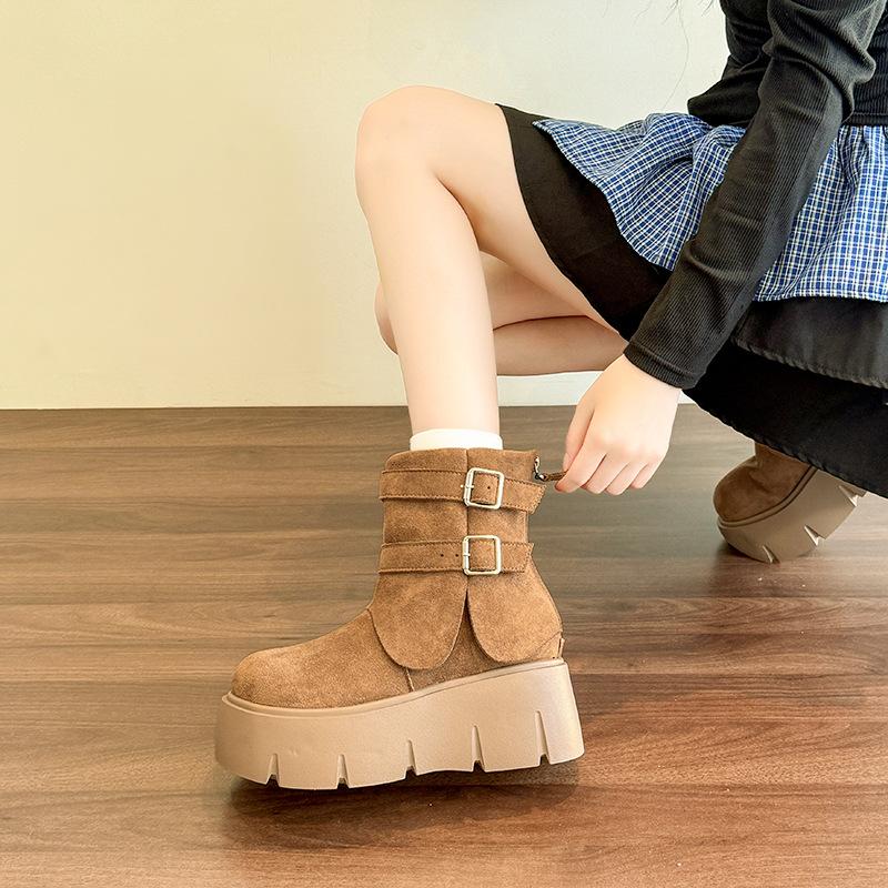 2025 осень и зима новая бархатная теплая хлопковая обувь высокий верх толстая подошва замшевая хлопковая обувь женская обувь модная универсальная хлопковая обувь 40 верблюд