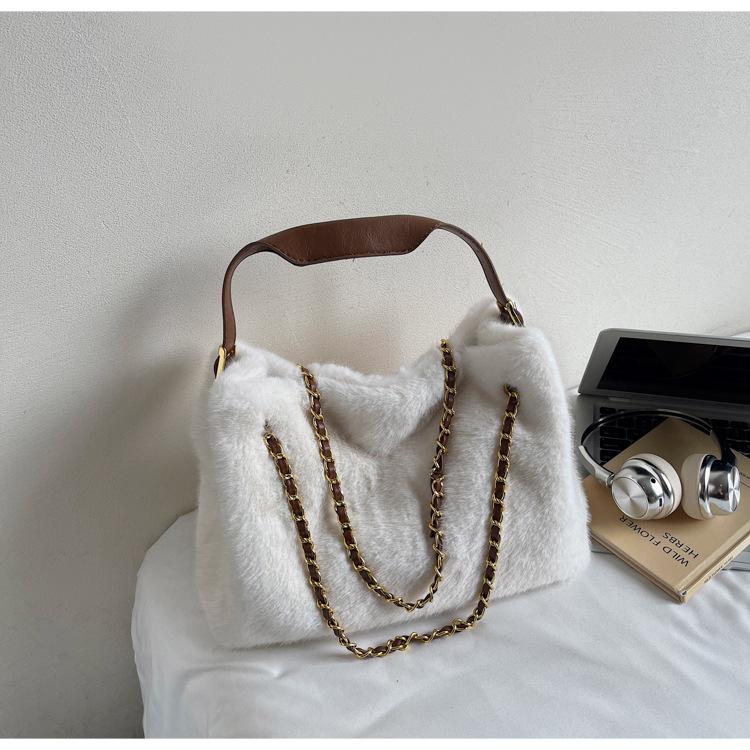 2025 осень и зима новые модные универсальные женские сумки нишевые плюшевые сумки большой вместимости сумки подмышку пушистые сумки женские оптом покинуть белый
