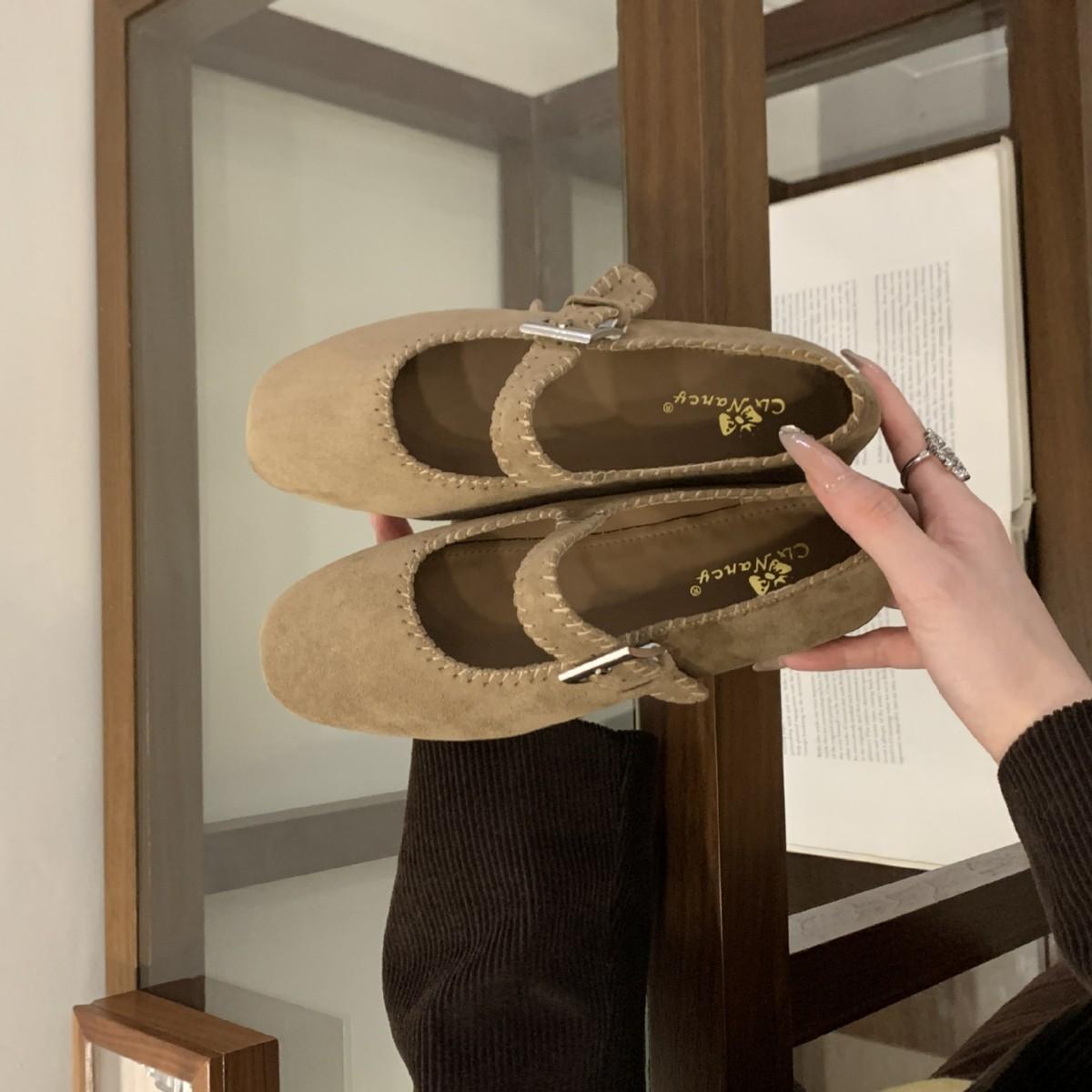 2025 осень и зима новые однословные замшевые туфли с легким вырезом, плетеные, на мягкой подошве, для通勤 39