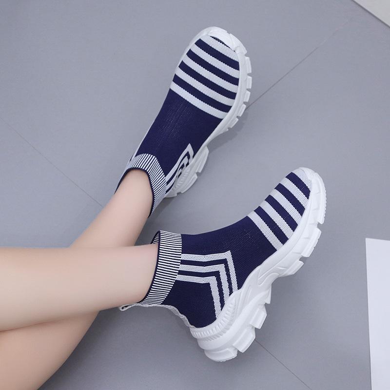 2025 осень новая мода вязаные короткие носки ботильоны женские маффины на толстой подошве круглый носок одна ленивая педаль повседневная обувь 35 темно-синий