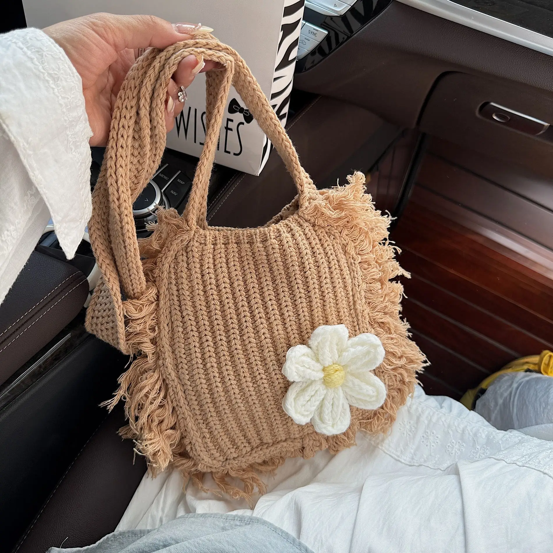 2025 отпускная вязаная сумка-мешок для женщин, ленивый стиль, вязанная крючком сумка на плечо с цветочным принтом, пляжная сумка-тоут в стиле бохо, тканая сумка через плечо
