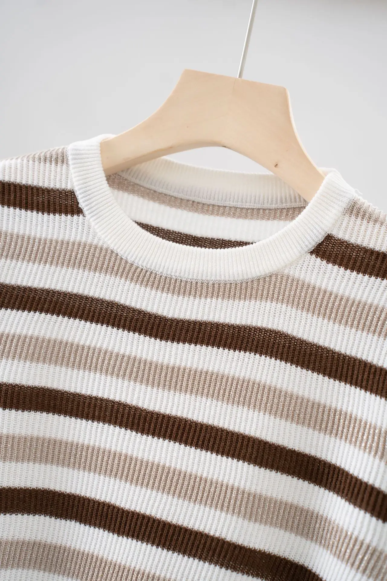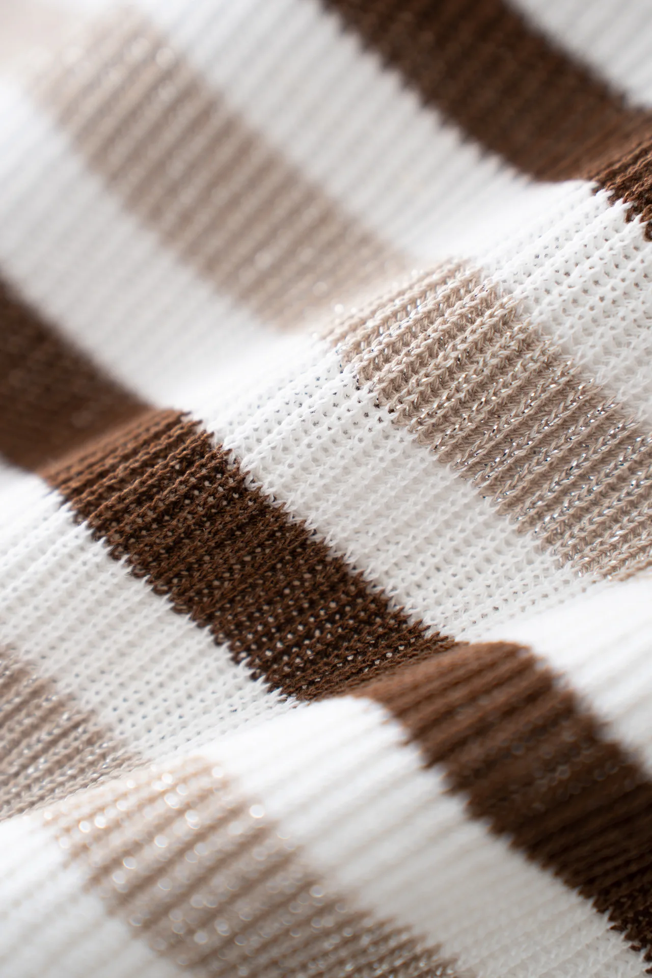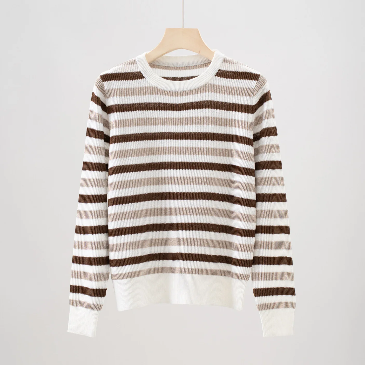 2025 ранняя осень, новые льняные золотые и серебряные шелковые переплетенные вязаные эластичные повседневные топы с длинными рукавами и круглым вырезом для женщин