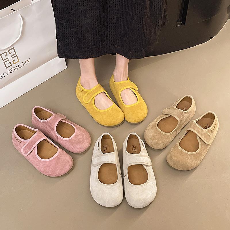 2025 ретро хлопковая обувь детская весна и осень Мэри Джейн новые плюшевые Birkenstocks мягкая подошва неглубокое горло плоское дно 35 розовый