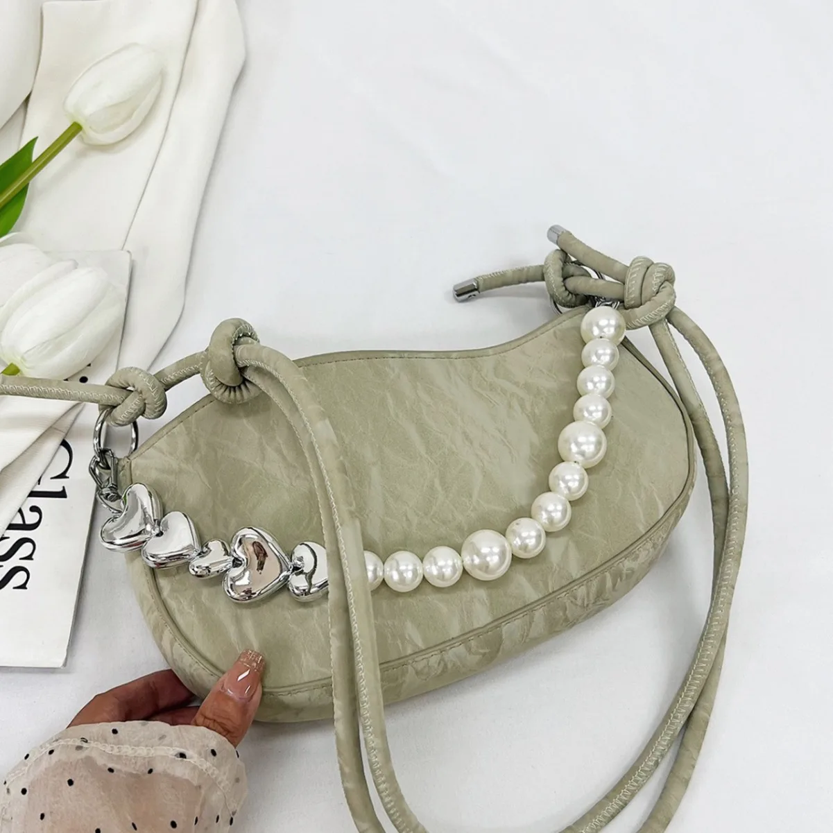 2025 французская жемчужная сумка на плечо, элегантный кошелек под мышками для женщин, роскошная нишевая сумка через плечо, модная верхняя ручка