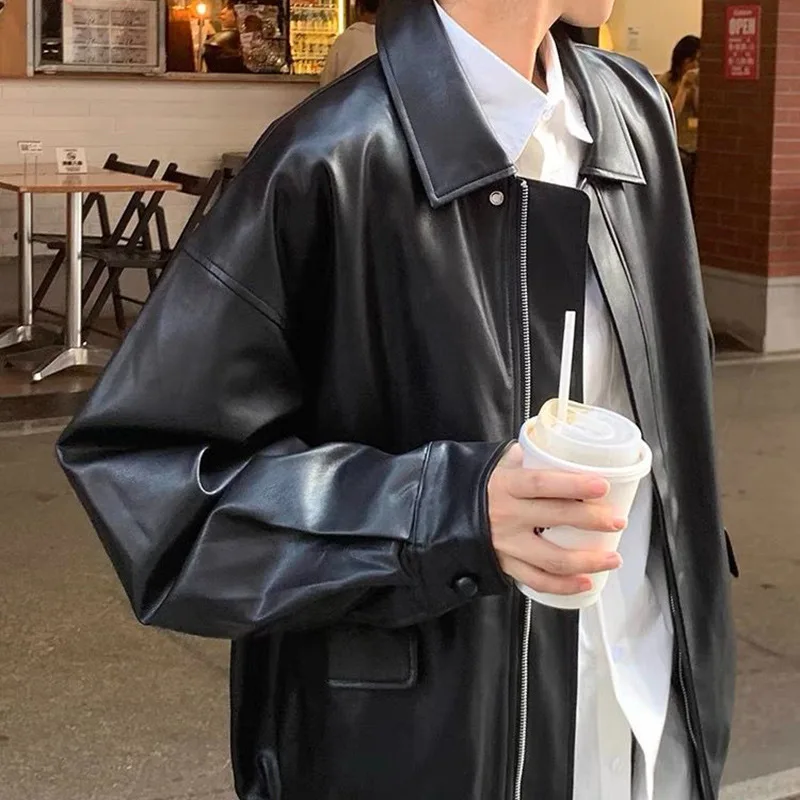 2026 Spring Women's Cropped Solid Color Jacket Vintage Brown Leather Petite Loose Fit Motorcycle Jacket Zipper Cool Outerwear