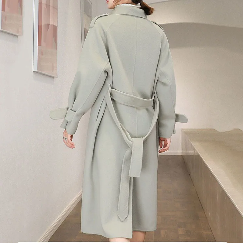 2026 весна осень новая шерстяная ветровка пальто женские шерстяные пальто средней длины прямой трубчатый ремень смешанное шерстяное пальто