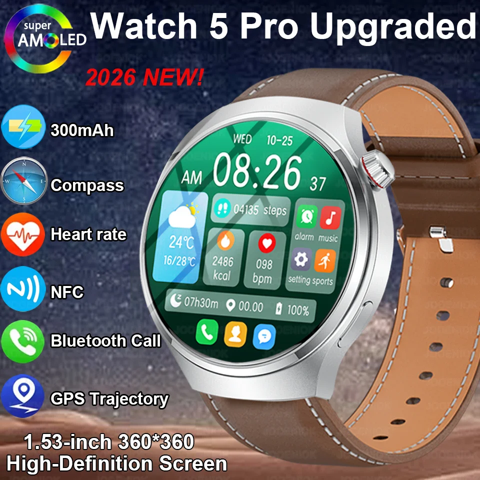 2026 New Watch 5 Pro Upgrade GPS NFC Men's Smartwatch 360*360 AMOLED HD Bluetooth Call Waterproof Smart Watch For Android iOS
