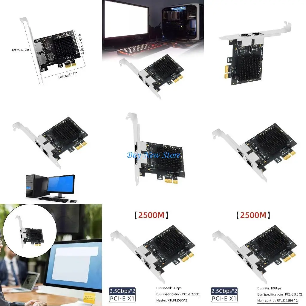 20CE Ethernet Card 2.5Gbps PCIE RTL8125BG Two Rj45 Port Ethernet Networking Expansion