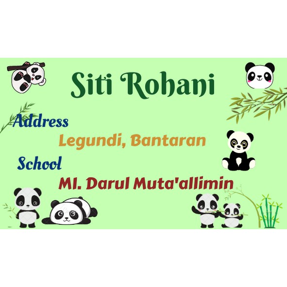 21 Pcs Sticker Nama Custom Panda Uk. 4x6.5cm