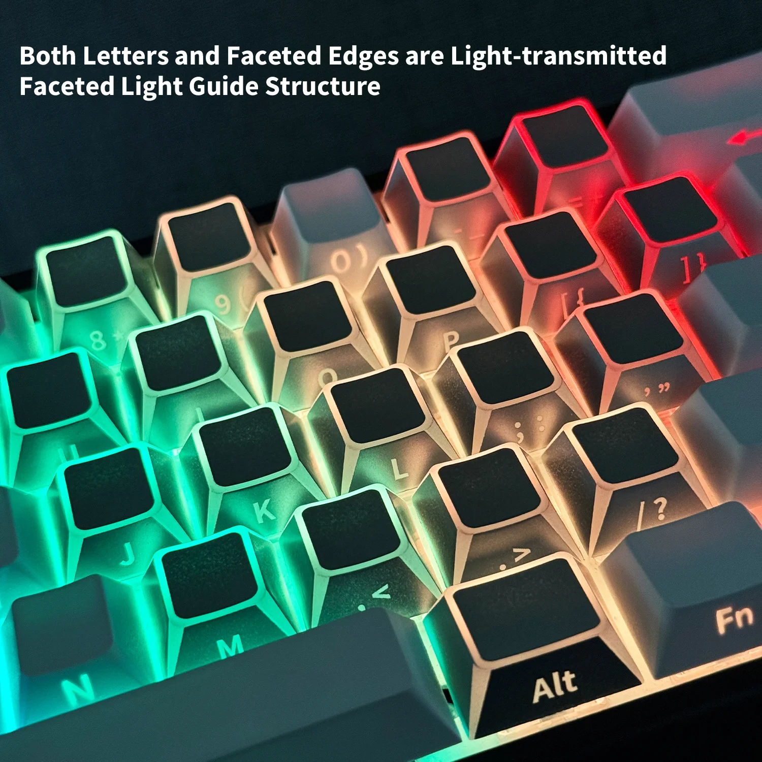 21-key Faceted Light Guide Structure Translucent Side-printed Characters Keycaps Cherry Profile Visual metallic texture