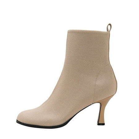 Women Walking Shoes Women Ankle Boots Autumn And Winter Solid Color Simple Fashion Stiletto Round Toe Side Zipper Ankle Boots for Women Mesh A
