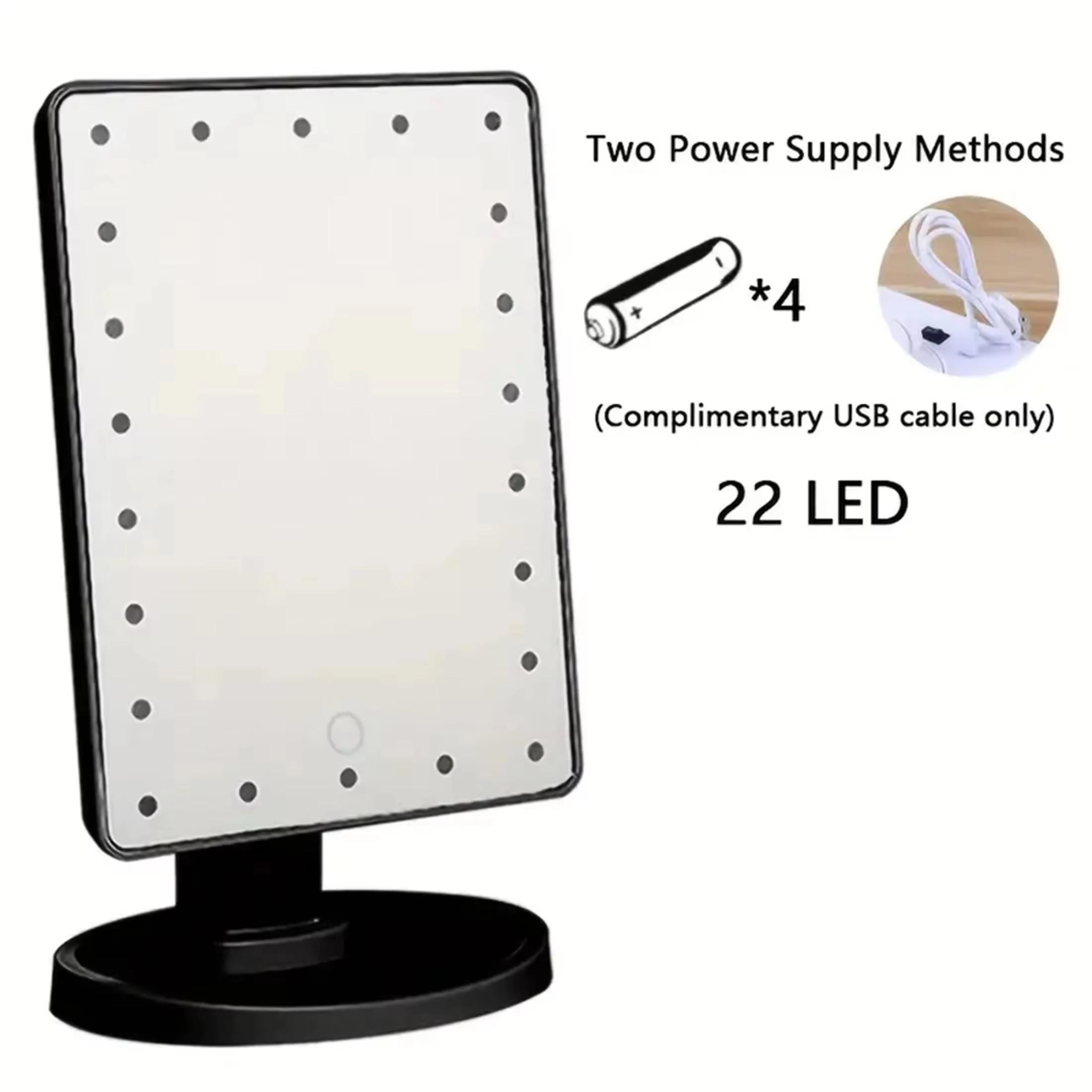 22 светодиода Зеркало для макияжа с сенсорной подсветкой LED Регулируемое портативное настольное косметическое зеркало для путешествий Домашний туалетный столик Инструменты чёрный