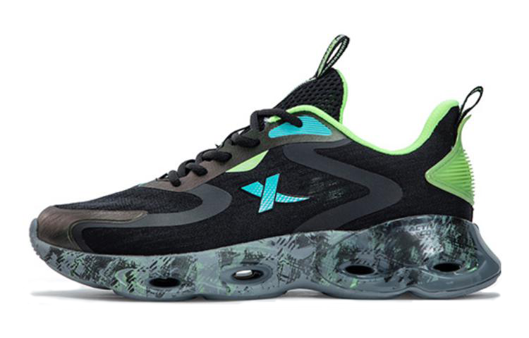 XTEP Нескользящие и дышащие низкие кроссовки для бега, черно-зеленые, для подростков