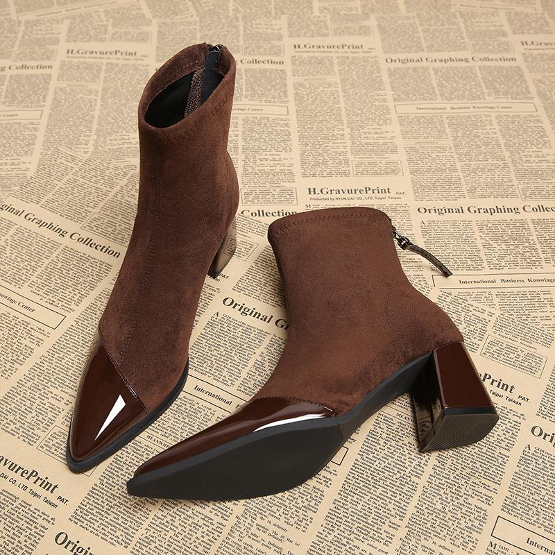 2376-3 короткие ботинки 2025 весна и осень новые остроносые тонкие ботинки популярные одинарные ботинки осень и зима высокий каблук эластичные ботинки 41