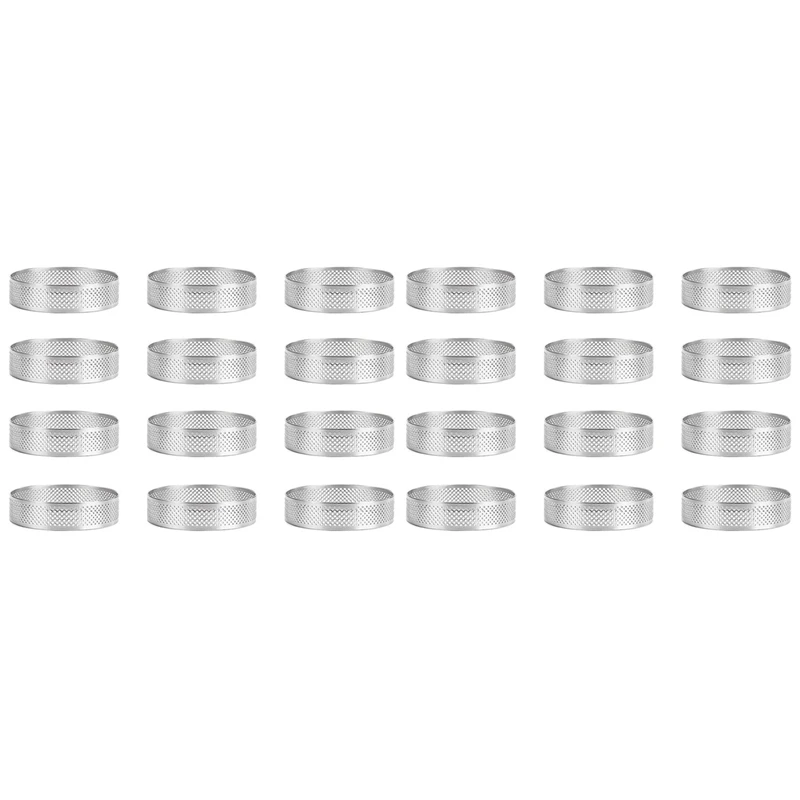 24 упаковка, нержавеющая сталь кольца для торта, ПЕРФОРИРОВАННОЕ кольцо для Мусса для торта, круглая форма для торта, инструменты для выпечки...