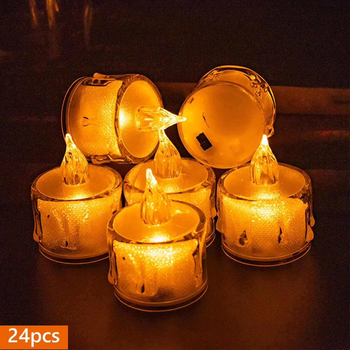 24 шт. беспламенные светодиодные свечи, креативная лампа для чая, на батарейках, украшение светильник дома, свадьбы, дня рождения, Прямая пост...