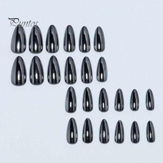 24 шт., заостренные черные носимые накладки для ногтей, сплошной цвет, DIY Art, накладные ногти, накладные ногти для девочек, накладные ногти с инструментами для ношения чёрный