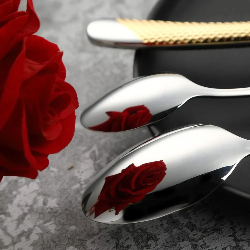 24 шт., зеркально полированный набор столовых приборов для стейка, утолщенная нескользящая ручка, набор столовых приборов, нержавеющая сталь, десертная вилка, набор ложек для свадьбы