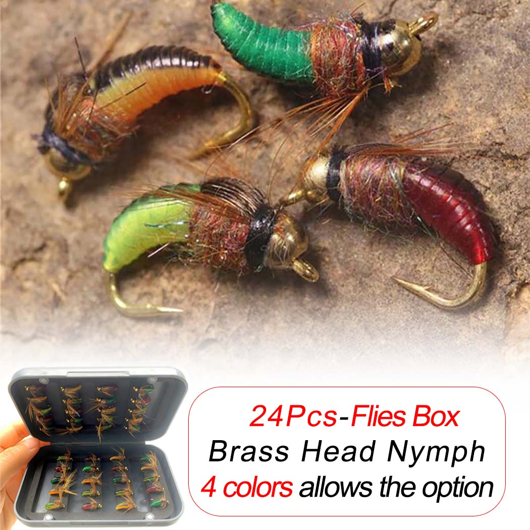 24 шт./кор. латунная бусина-головка нимфы ручейника оранжевого/красного/светло-зеленого/темно-зеленого цвета для ловли форели на мушку