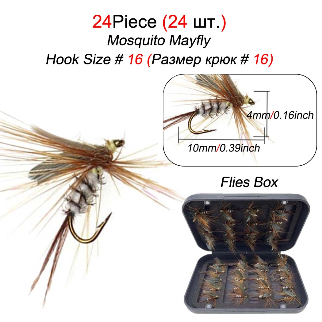 24 шт./кор. нахлыстовая приманка для ловли форели, нимфа, сухие мокрые мухи, бионическая приманка, приманки для ловли форели нахлыстом 24Pcs-Size 16