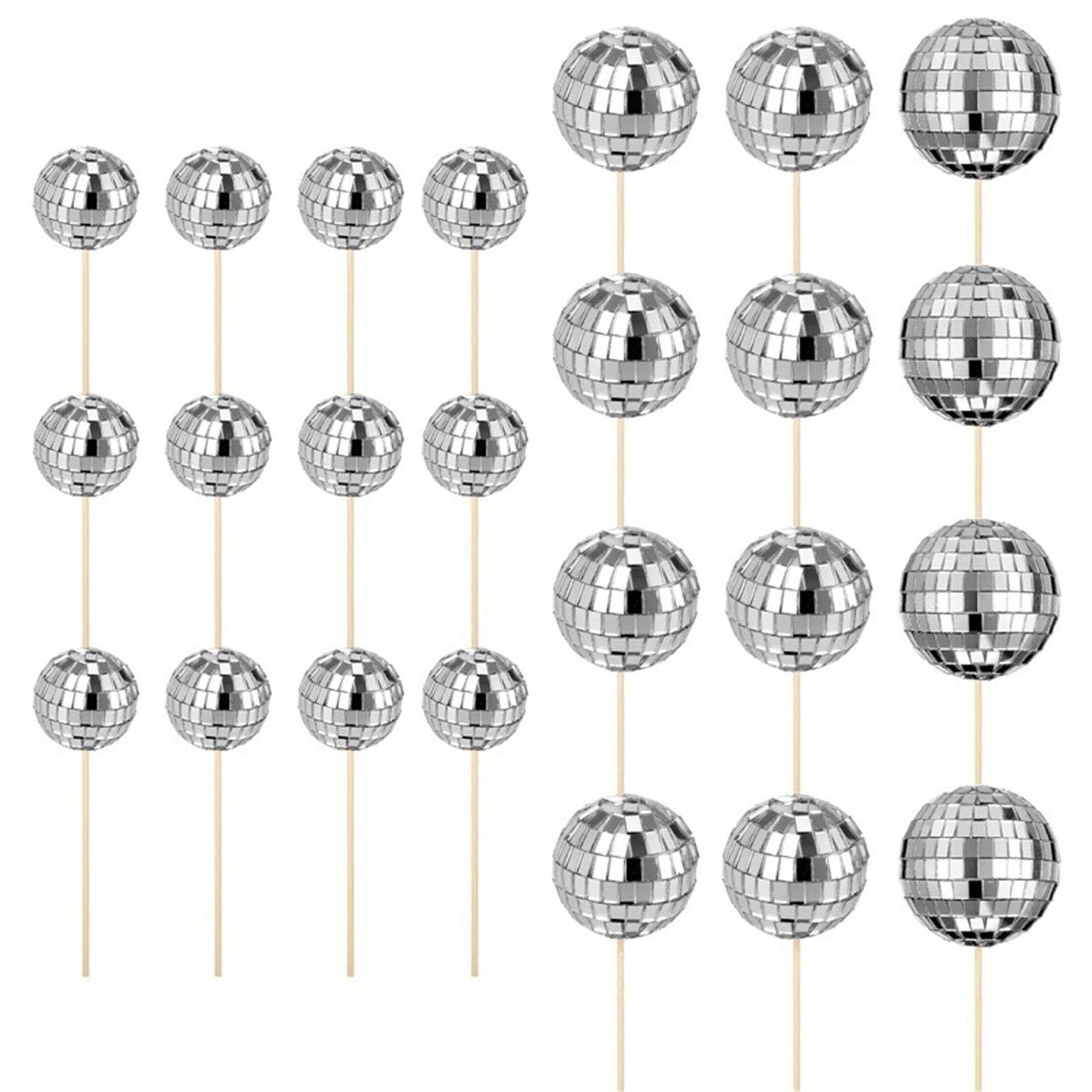 24 шт. светоотражающие диско-шарики для кексов, украшения для торта на свадьбу, день рождения, вечеринки, принадлежности для десерта серебряный