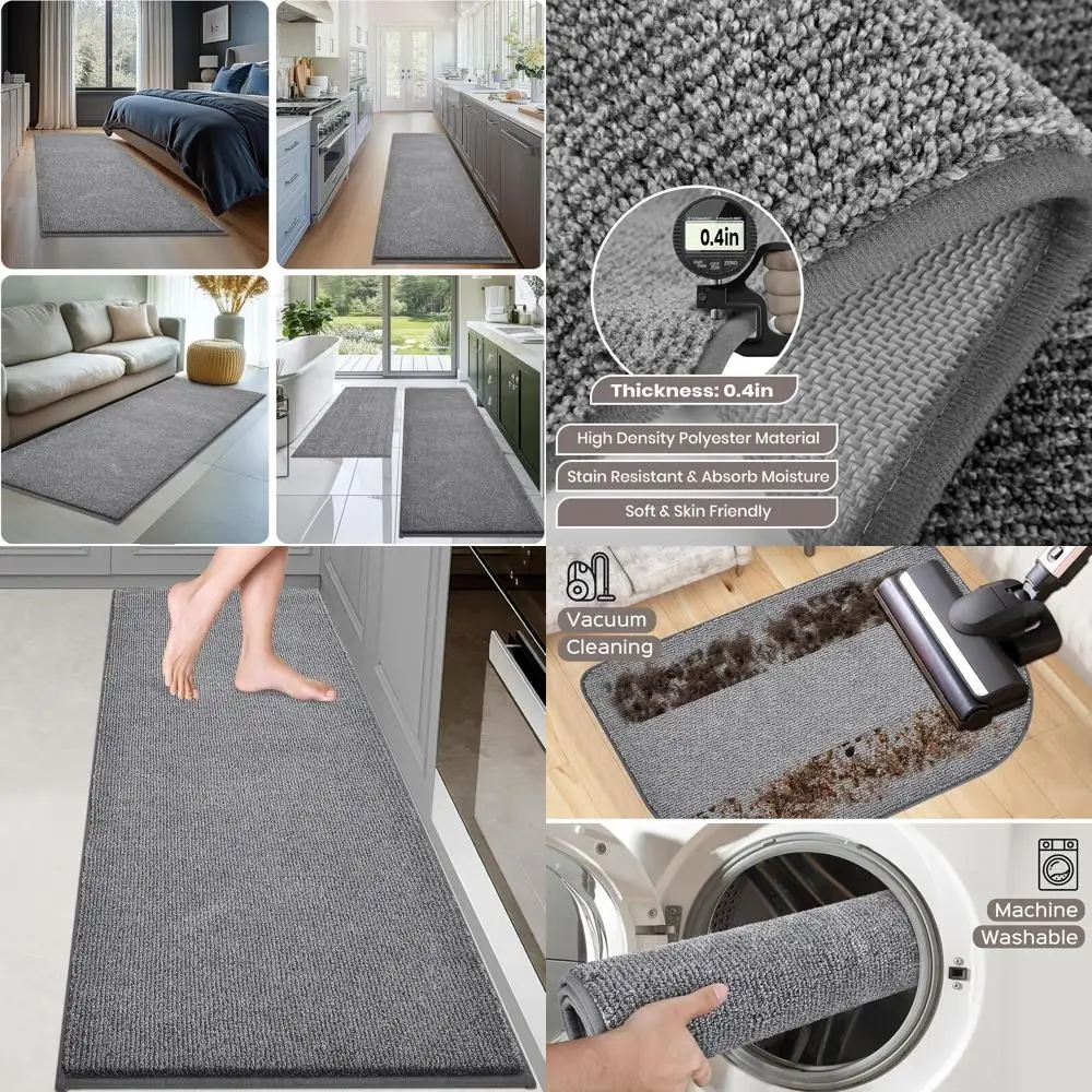 24 x 70 Washable Rectangular Non-Slip Absorbent Indoor Entryway Runner Rug for Laundry, Bathroom, Bedroom