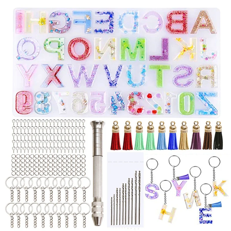 242 шт., силиконовые формы для литья под смолу, набор для начинающих, силиконовая форма с цифрами алфавита и набор инструментов для украшений ...