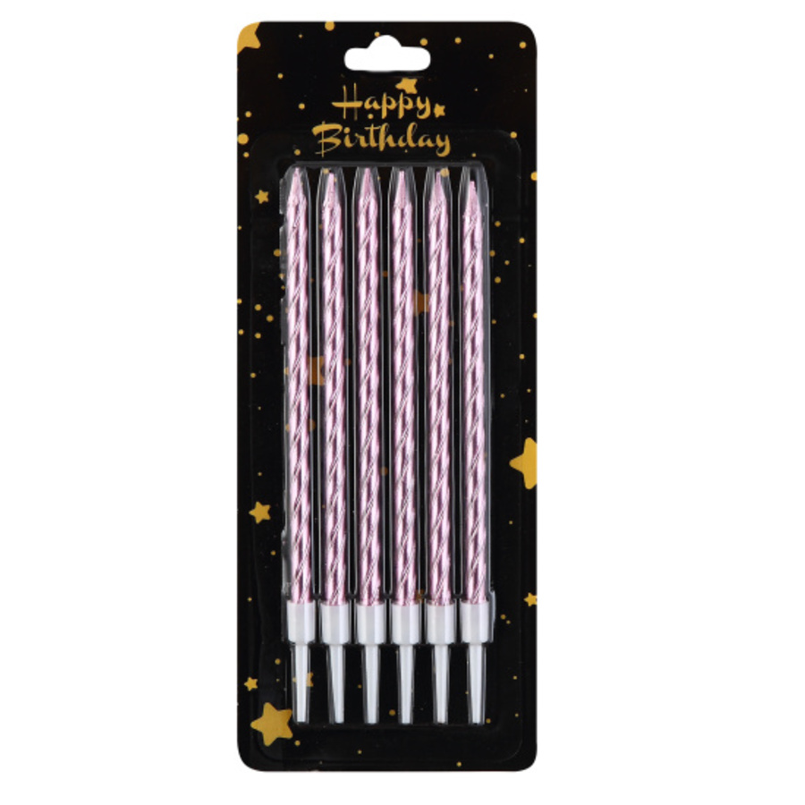 242121 Свеча праздничная для торта набор 6шт 11,5см Спираль розовые