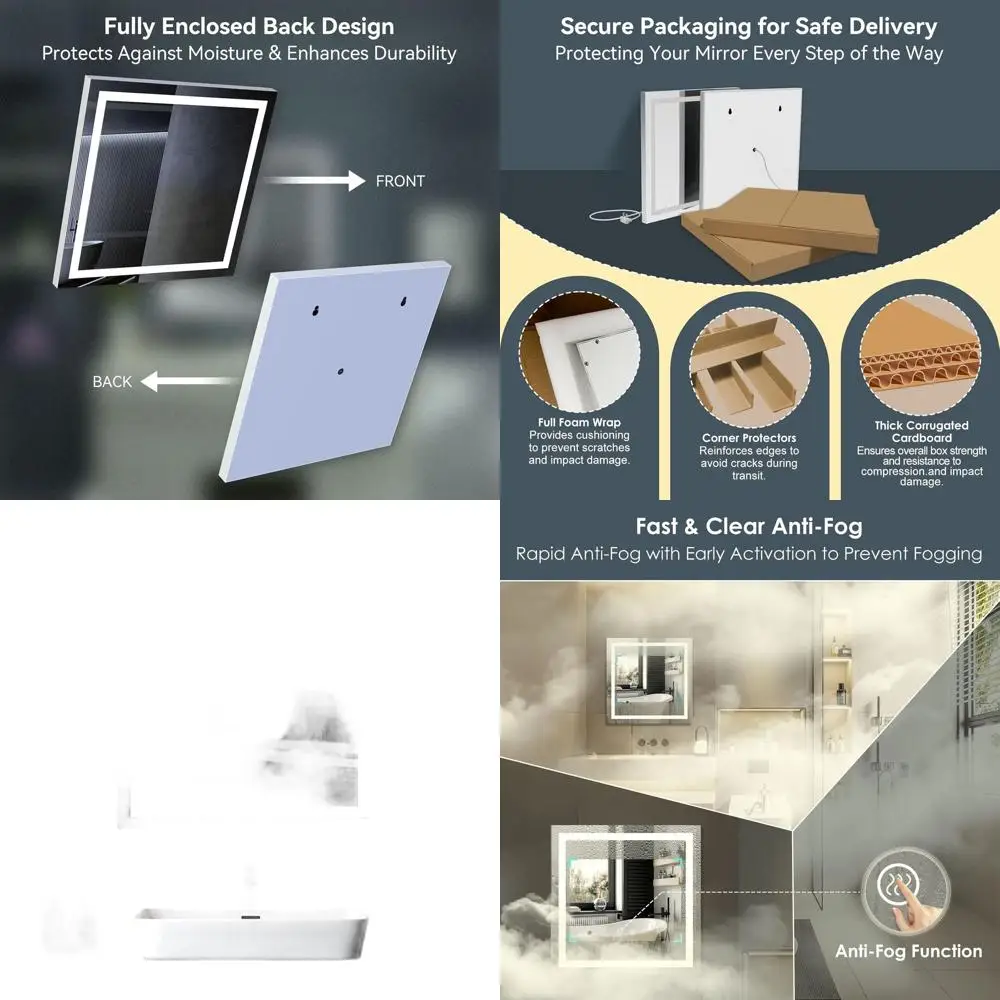 24x24 Inch Square LED Lighted Vanity Mirror, Touch Control with Memory Function, Adjustable Warm/Natural/Daylight Lighting