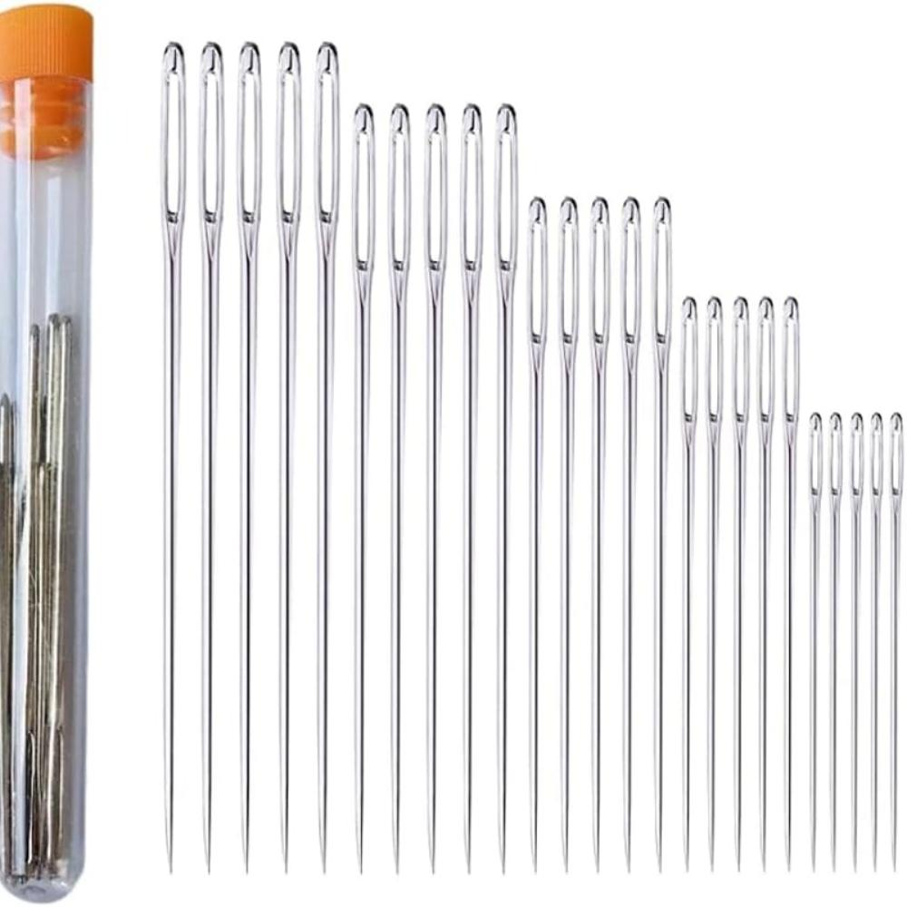 25 штук швейных игл с большим ушком 5 размеров иглы для ручного шитья с 25 иглами-бисеринками с большим ушком в прозрачной пробирке для хранения для ремонта
