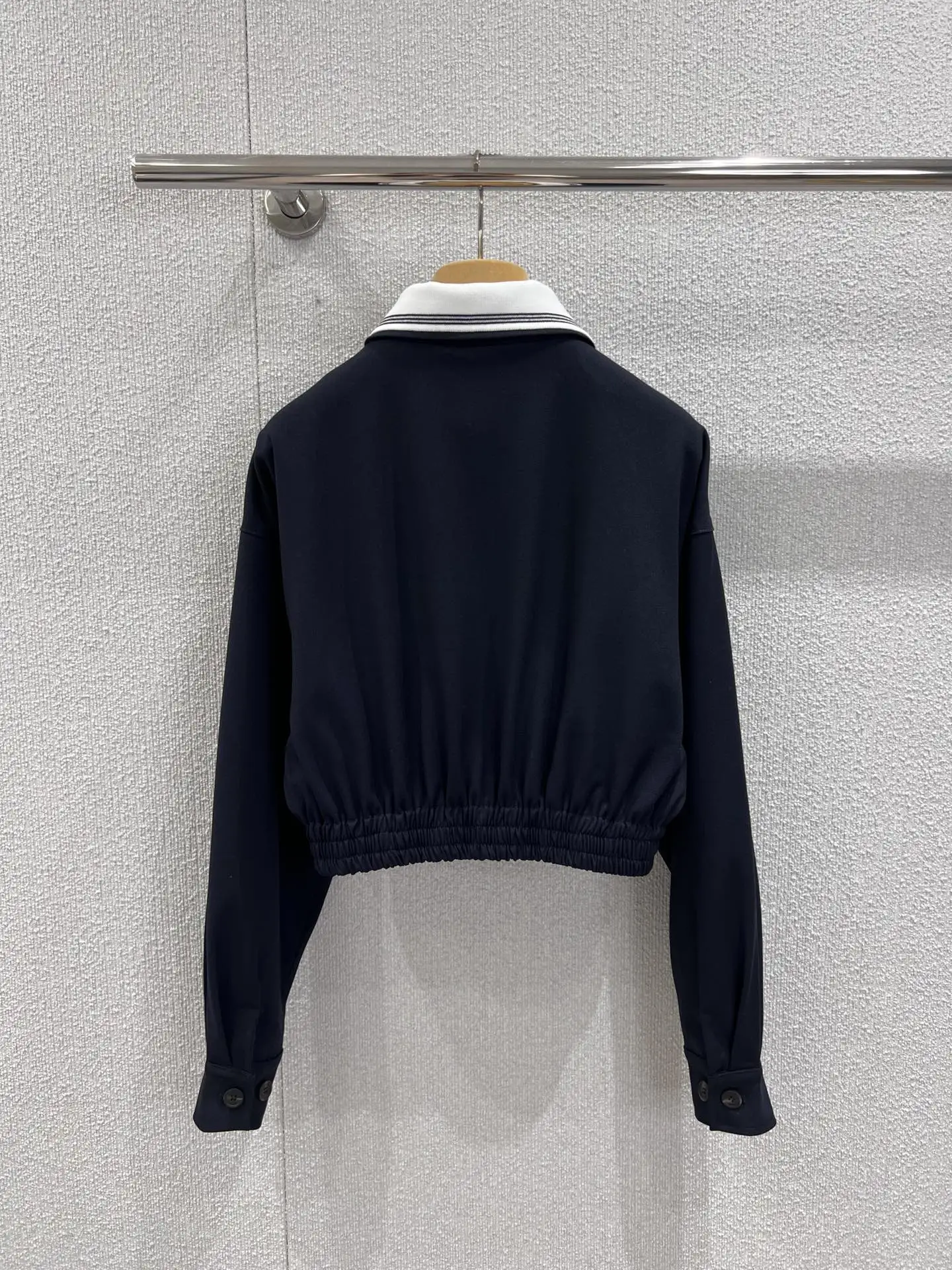25. ранняя осень, новое короткое пальто с воротником на молнии, хлопковая однотонная трикотажная ткань, эластичная и эластичная нижняя часть W329
